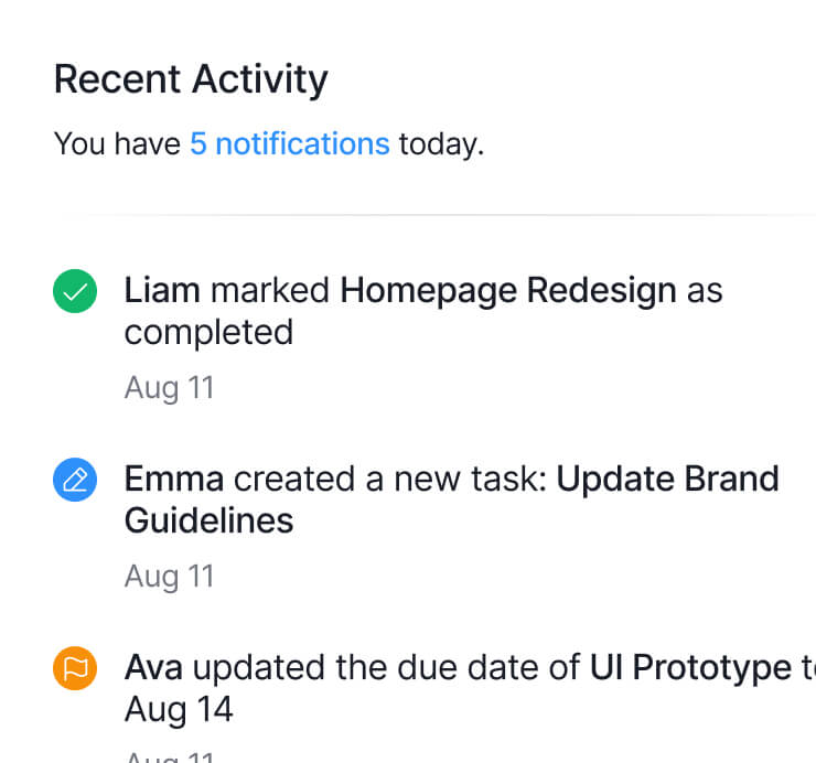 Get notified about upcoming deadlines, changes, and team updates in real-time.